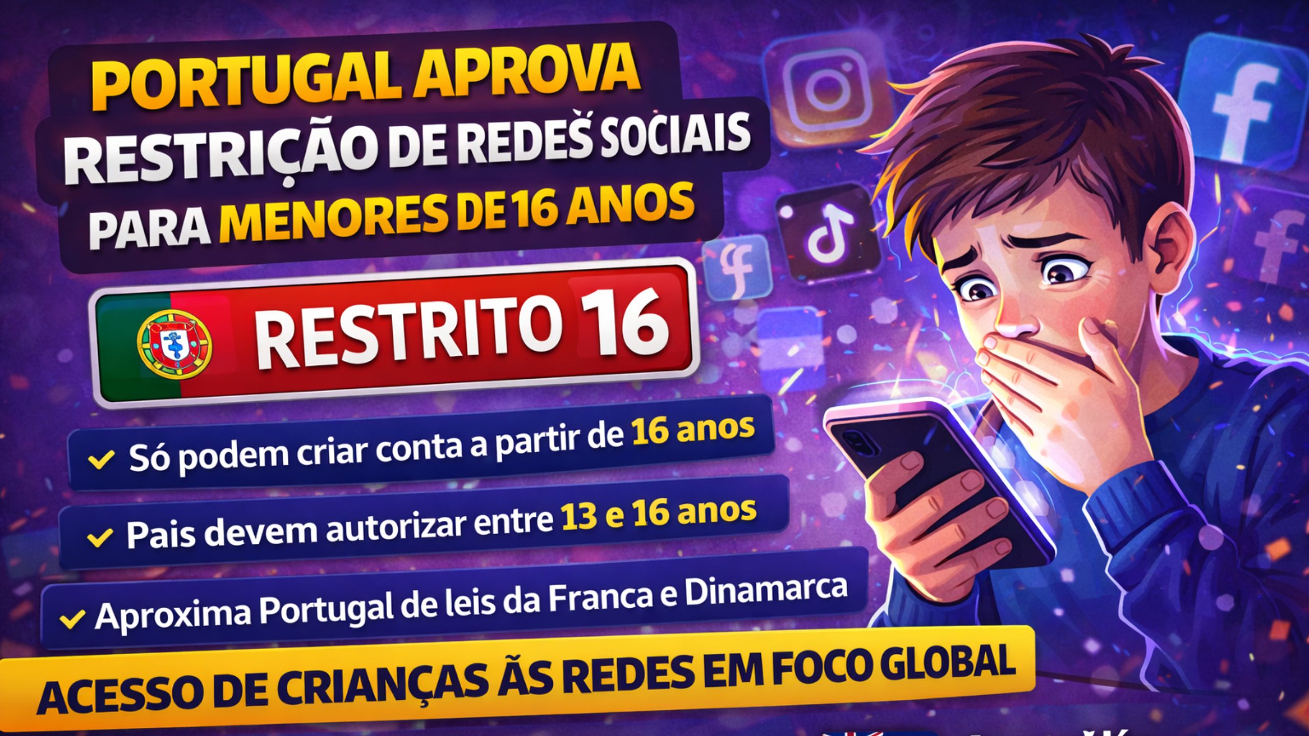 Portugal Eleva Idade Mínima para Redes Sociais: Nova Lei Restringe Acesso de Menores de 16 Anos e Amplia Debate Sobre Proteção Digital