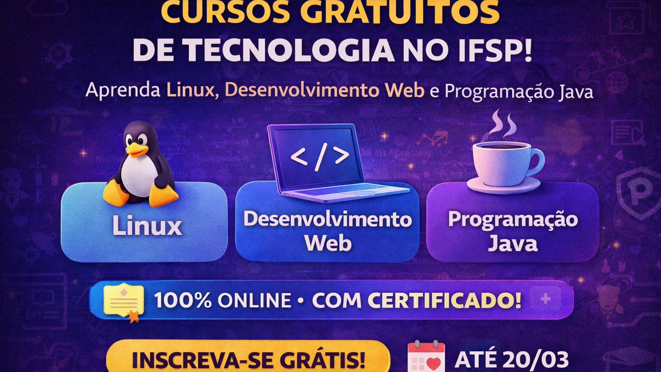 Cursos Gratuitos de Tecnologia no IFSP: oportunidade para aprender Linux, desenvolvimento web e programação Java com certificação online