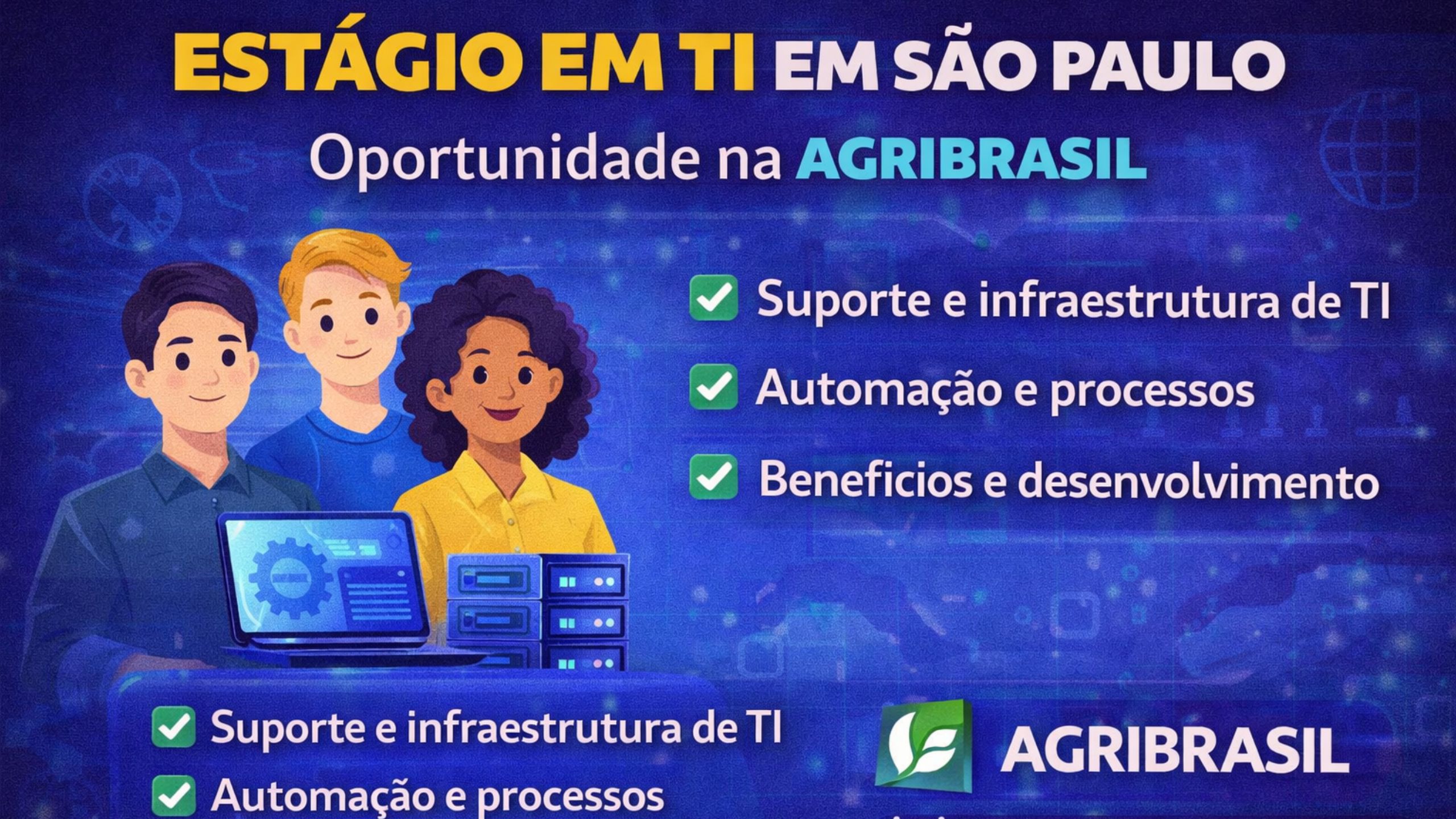 Estágio em TI em São Paulo: oportunidade para estudantes de tecnologia atuarem com suporte, infraestrutura e automação na Agribrasil