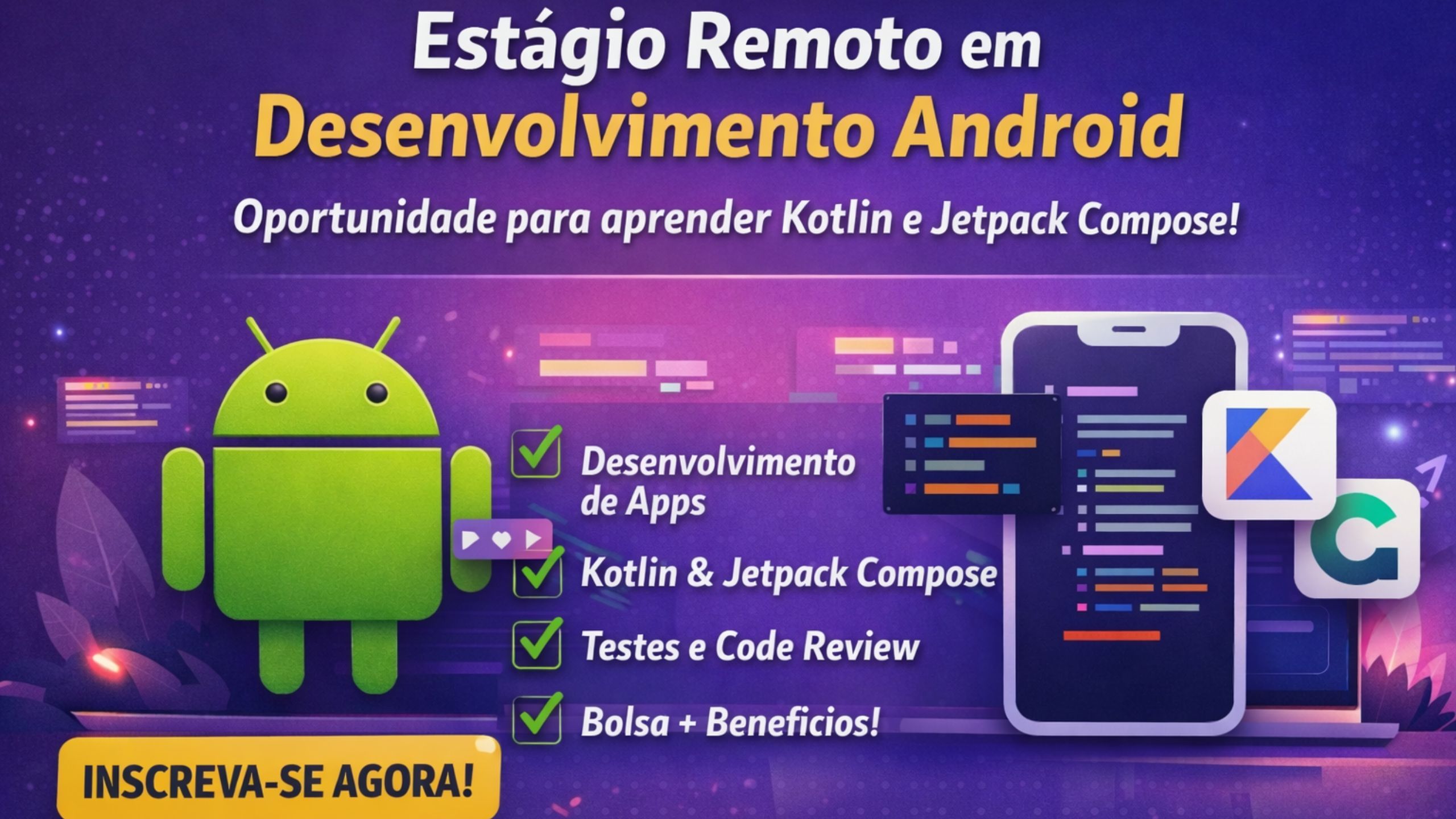 Estágio Remoto em Desenvolvimento Android: oportunidade para estudantes aprenderem Kotlin, Jetpack Compose e arquitetura moderna de aplicativos