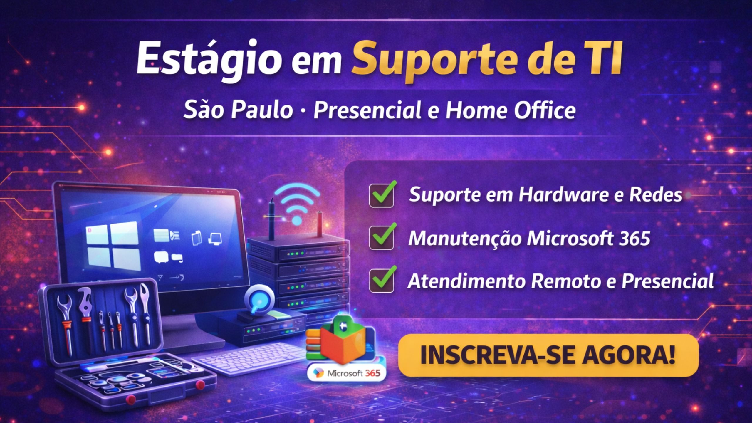 Estágio em Suporte de TI em São Paulo: Oportunidade para Estudantes Aprenderem Infraestrutura, Redes e Microsoft 365 no Ambiente Corporativo