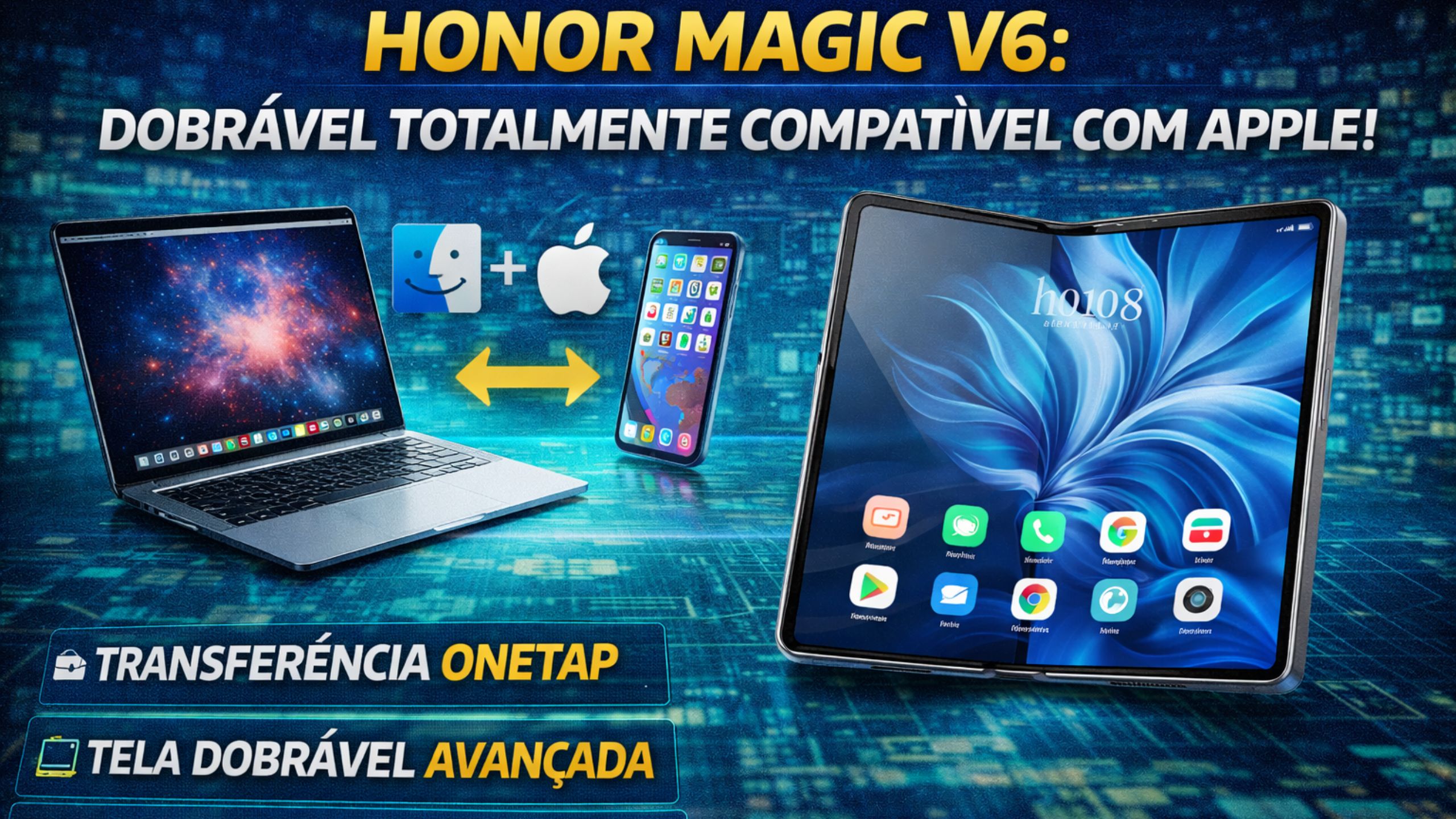 HONOR Magic V6: O Smartphone Dobrável que Integra Android e Apple com Transferência OneTap, Tela Avançada e Bateria Gigante