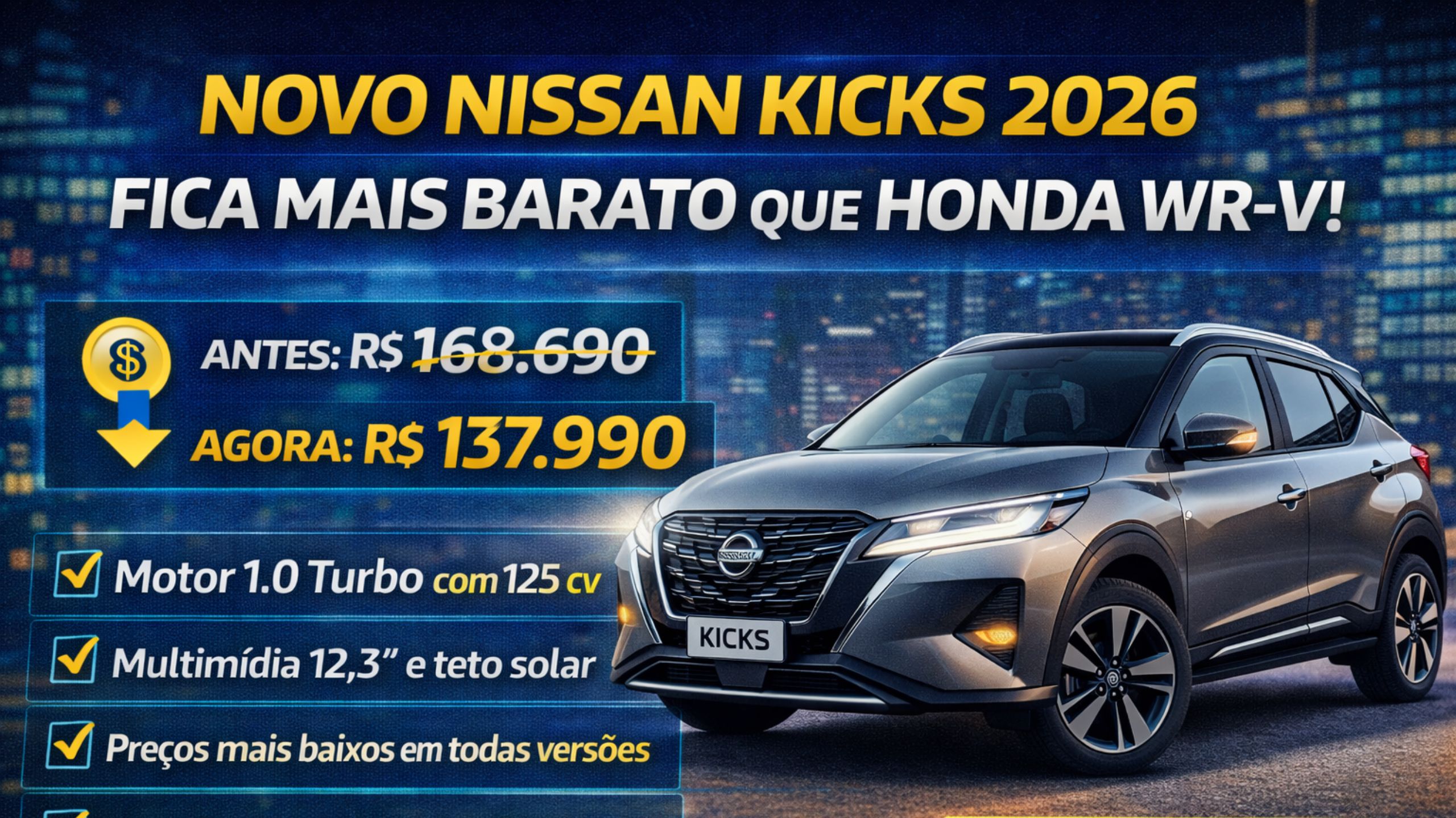 Nissan Kicks 2026 Fica Mais Barato e Entra na Disputa com Honda WR-V: Veja Preços, Versões e Motorização do SUV que Agitou o Mercado