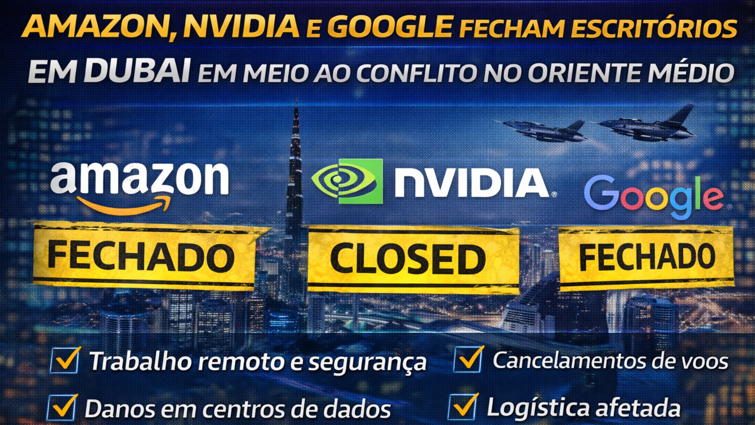 Gigantes da Tecnologia Reagem ao Conflito no Oriente Médio: Amazon, NVIDIA e Google Reestruturam Operações e Fecham Escritórios em Dubai