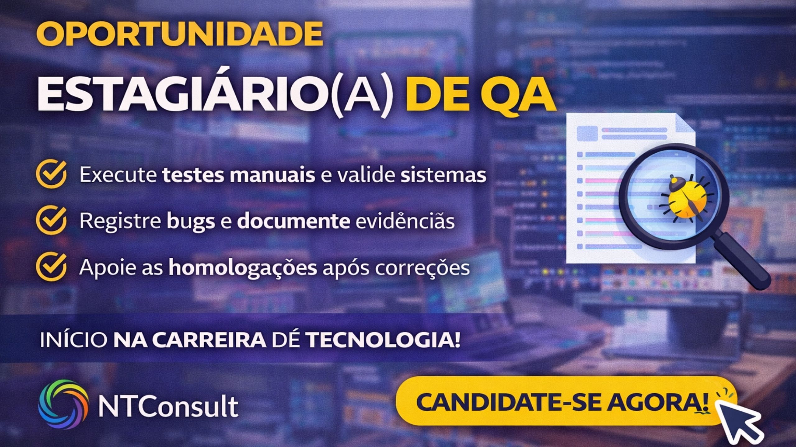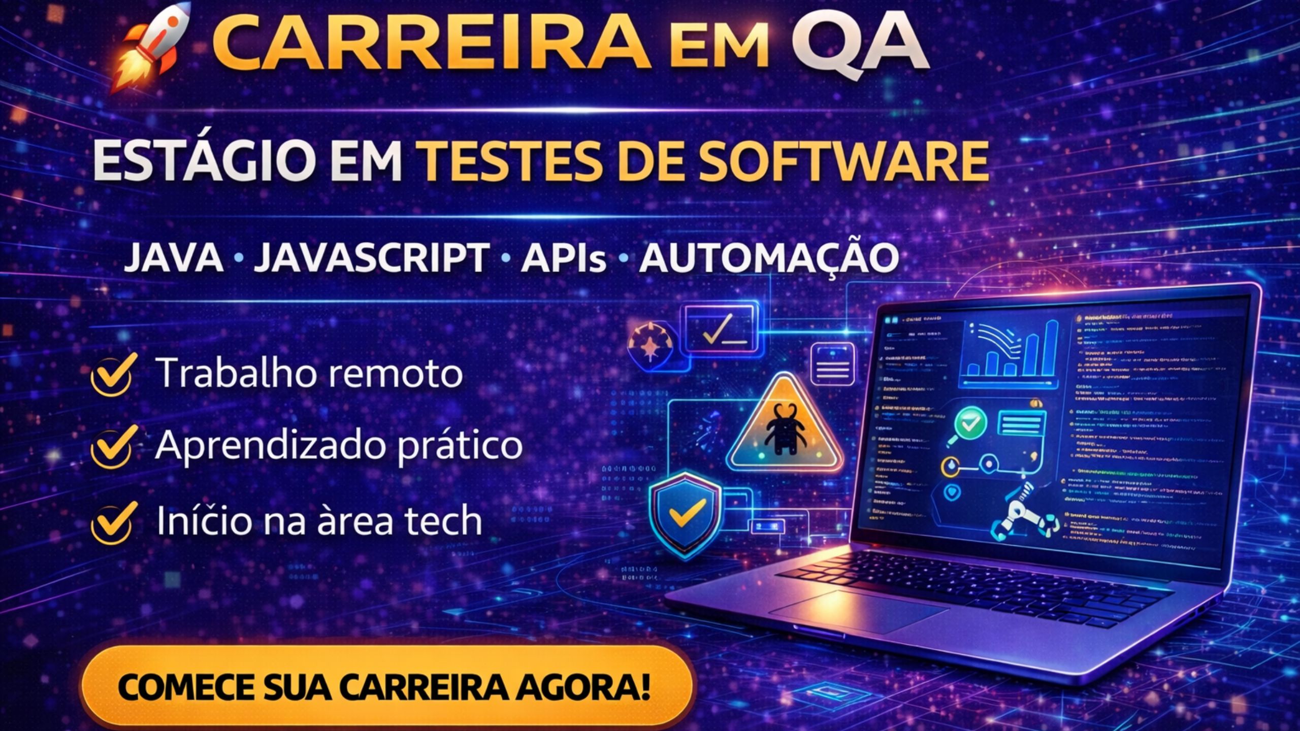 Como uma oportunidade híbrida em Desenvolvimento e QA pode acelerar sua carreira em tecnologia com aprendizado prático, colaboração real e domínio de ferramentas modernas