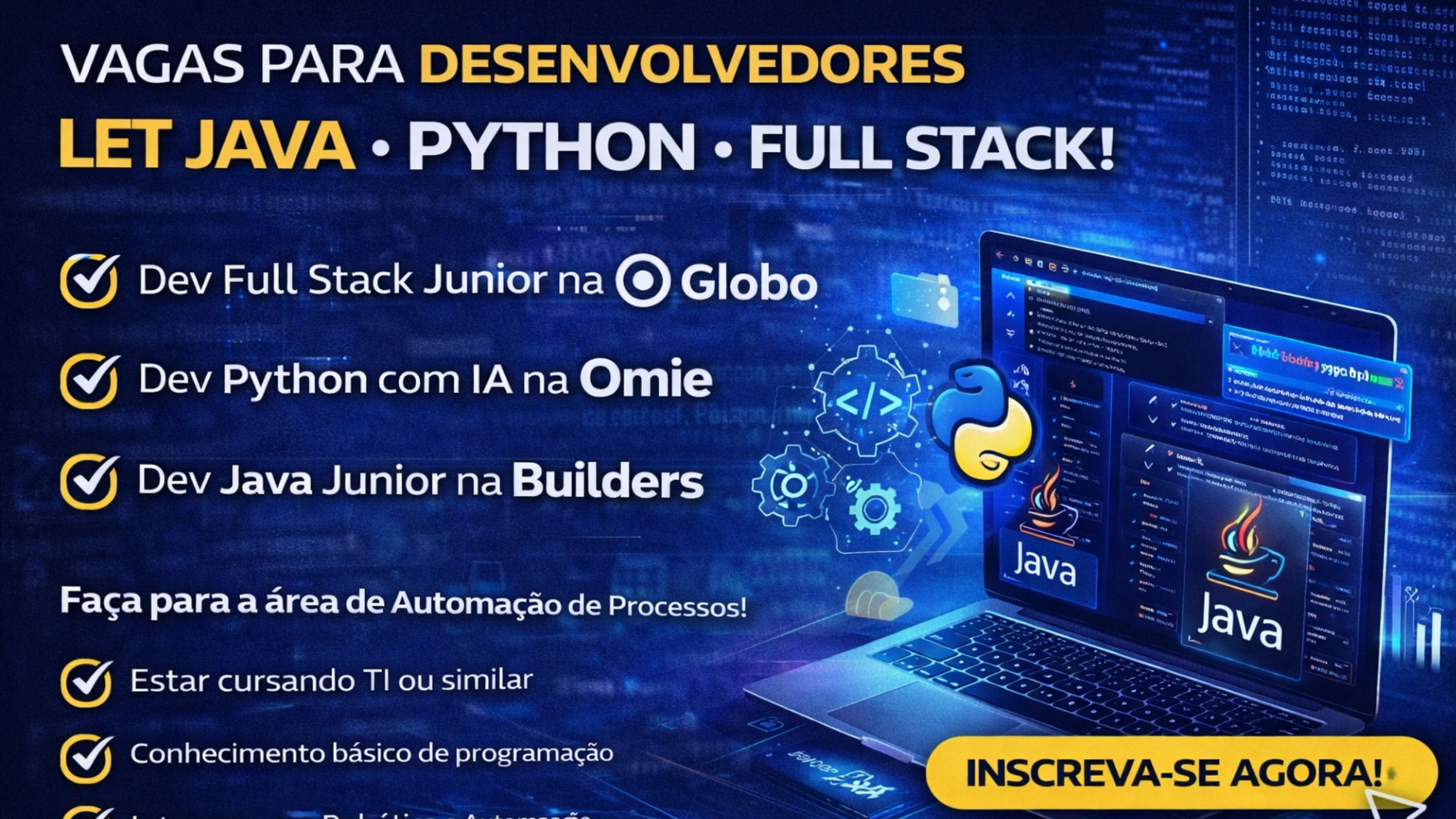 Carreira em Desenvolvimento Java, Python e Full Stack: Como Entrar no Mercado Tech com Vagas em Empresas de Alto Impacto como Globo, Omie e Builders